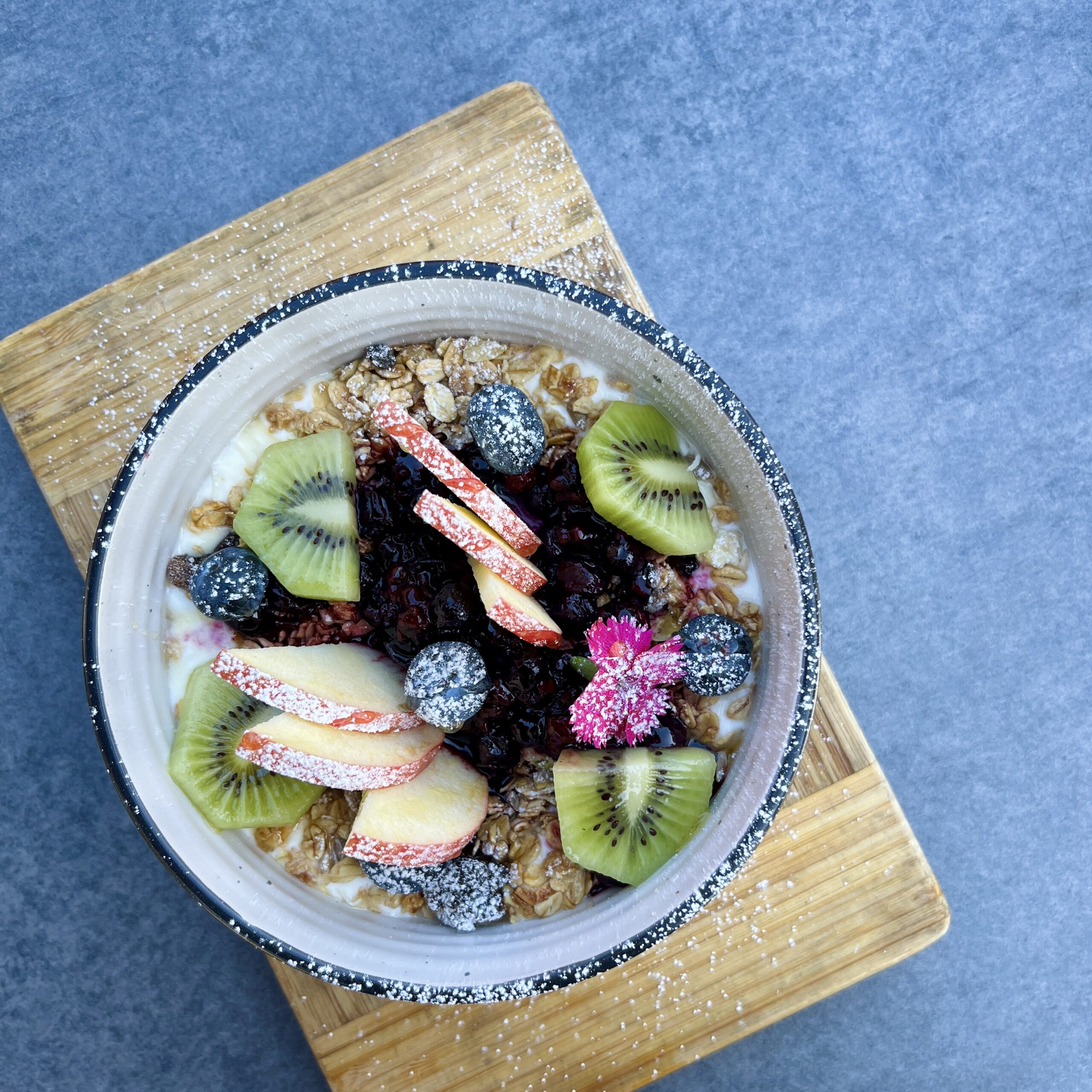 Served with fresh fruit, honey and a berry compote